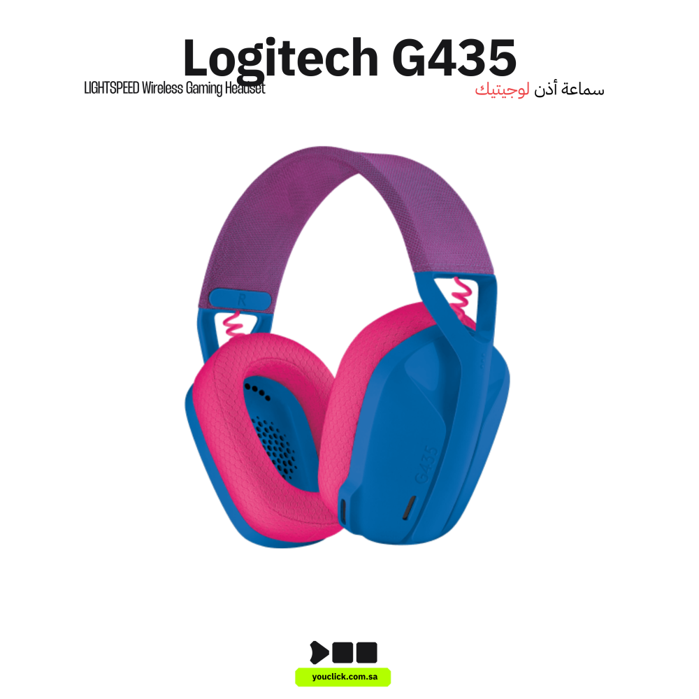 سماعة الألعاب اللاسلكية Logitech G435 Lightspeed & Bluetooth، مقاومة 45 أوم، نطاق لاسلكي يصل إلى 10 أمتار، نطاق تردد 20 هرتز -20 كيلو هرتز، عمر بطارية يصل إلى 18 ساعة، أزرق | 981-001062