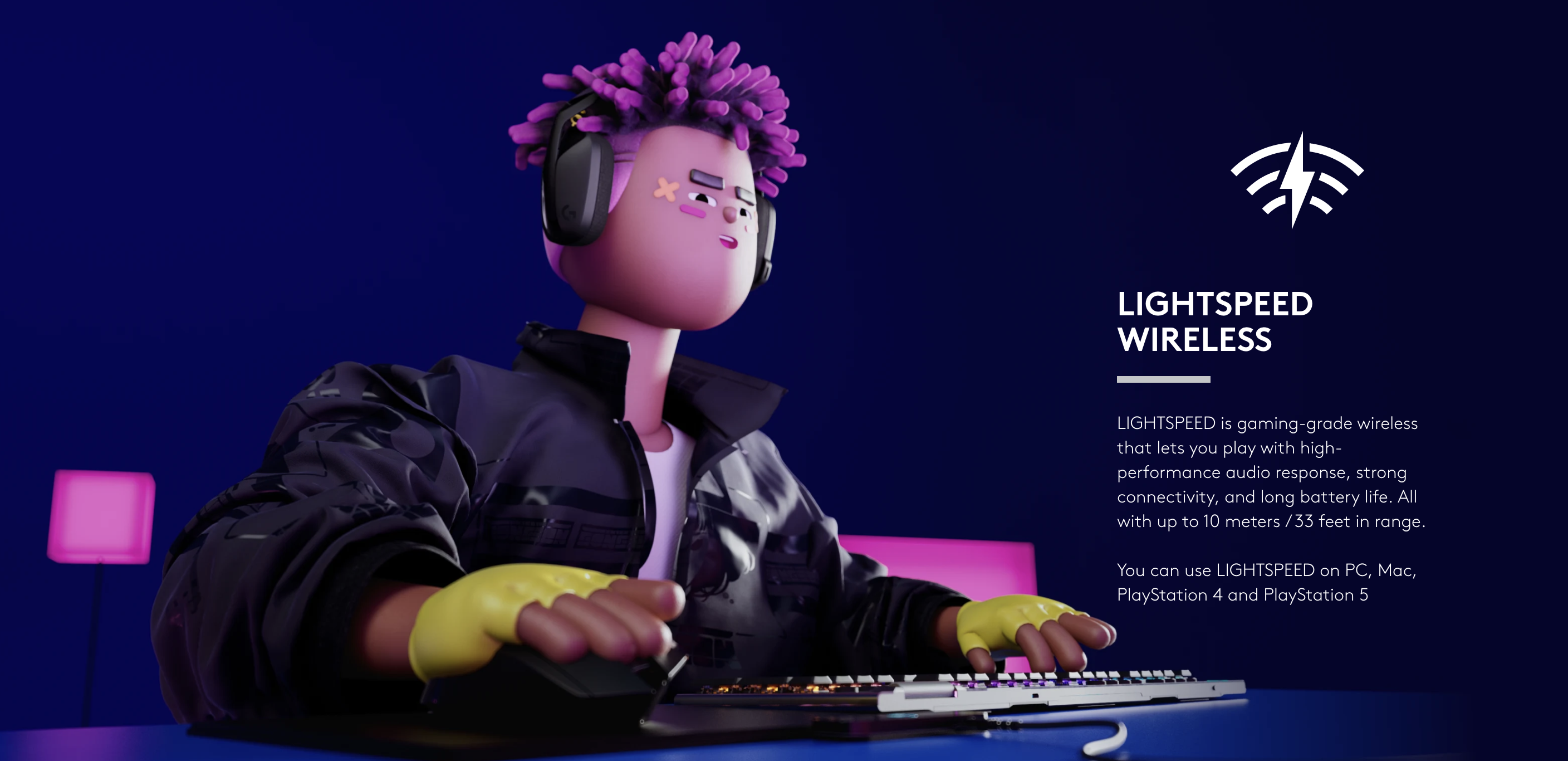 Up to 10 meters via LIGHTSPEED USB receiver or Bluetooth
