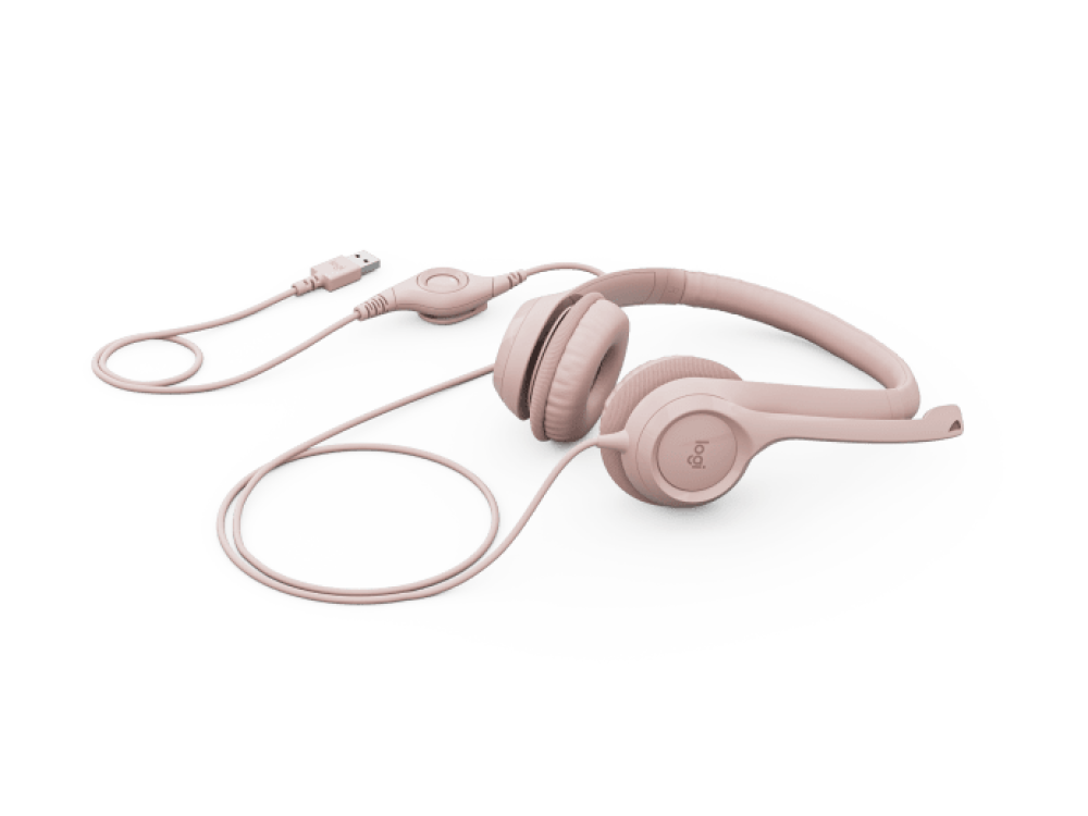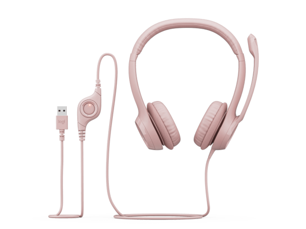 سماعة رأس سلكية من لوجيتك H390 للكمبيوتر الشخصي/الكمبيوتر المحمول، سماعات رأس استريو مع ميكروفون عازل للضوضاء، واجهة USB من النوع A، عناصر تحكم مدمجة، تعمل مع Chromebook - وردي | 981-001281