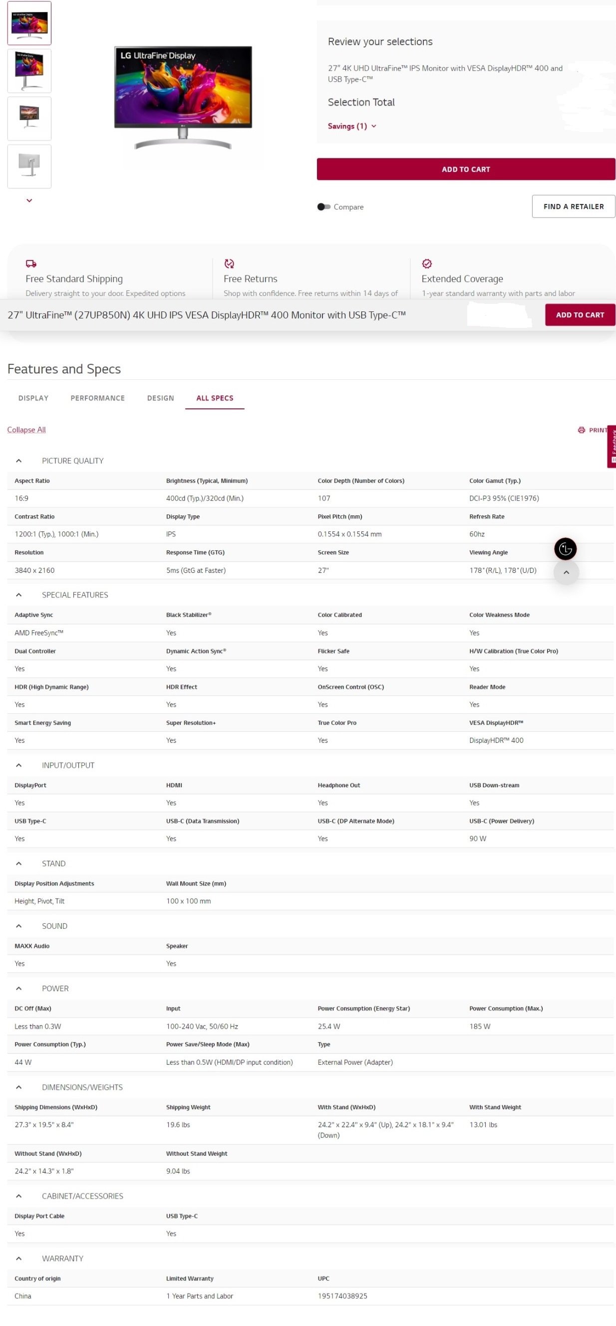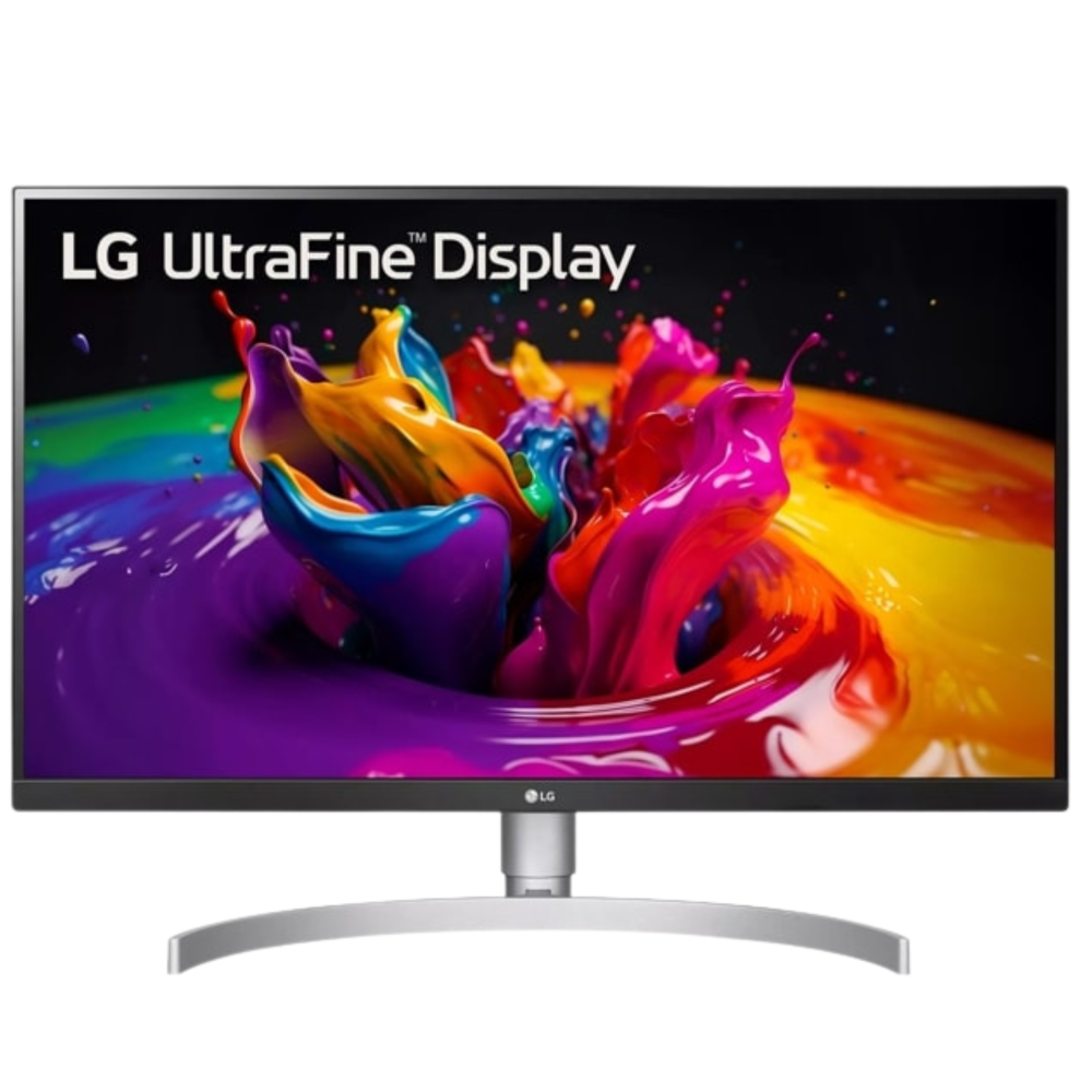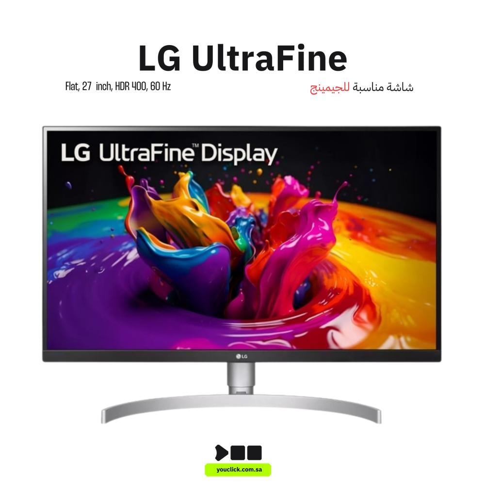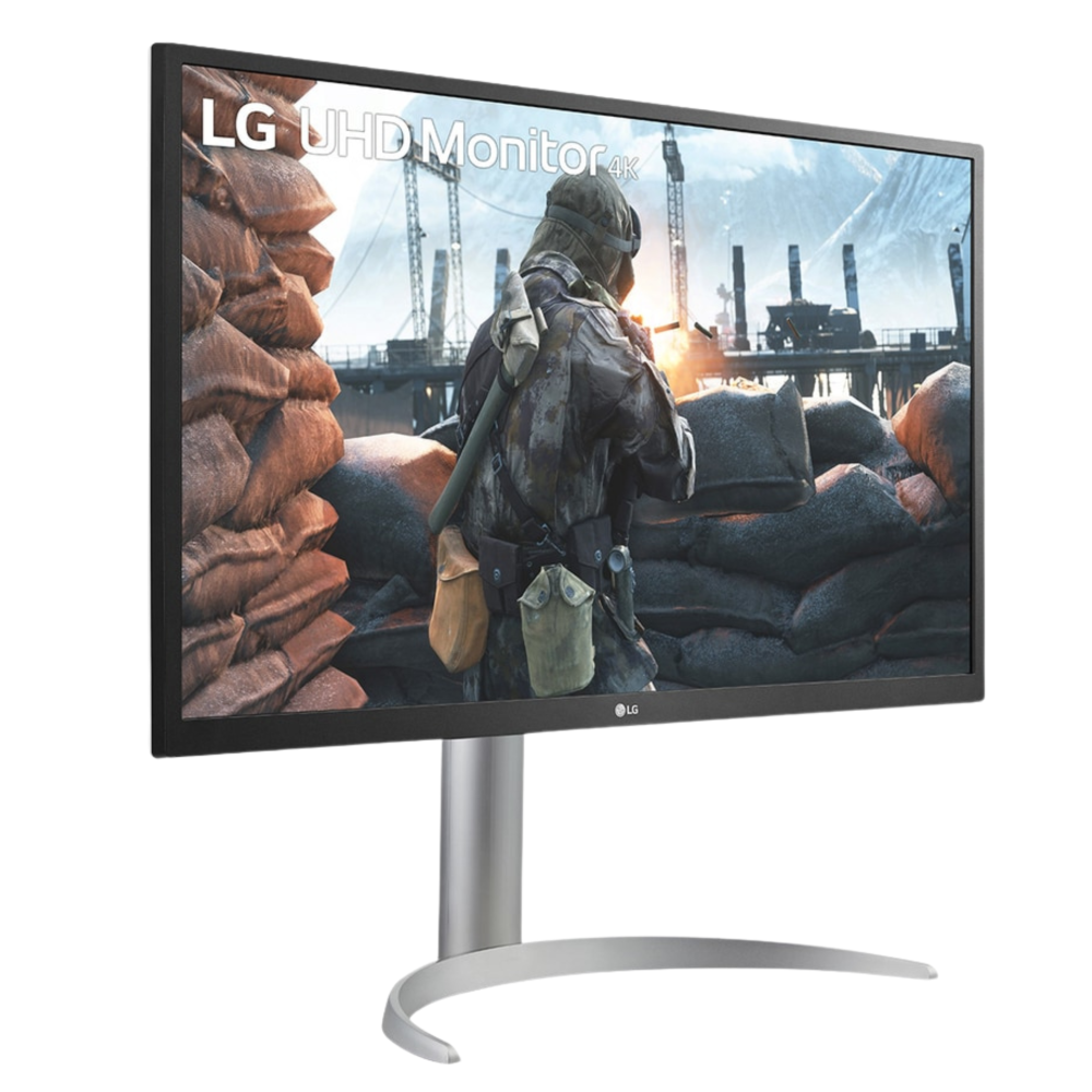 شاشة إل جي 27 بوصة UHD 4K IPS، HDR10، مزودة بمنفذ USB Type-C، حامل قابل للتعديل في الارتفاع، لون أبيض