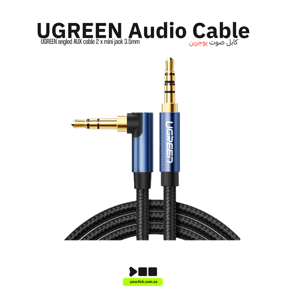 كابل AUX بزاوية Ugreen، 2 مقبس صغير 3.5 مم، 1.5 متر، أزرق (AV112)