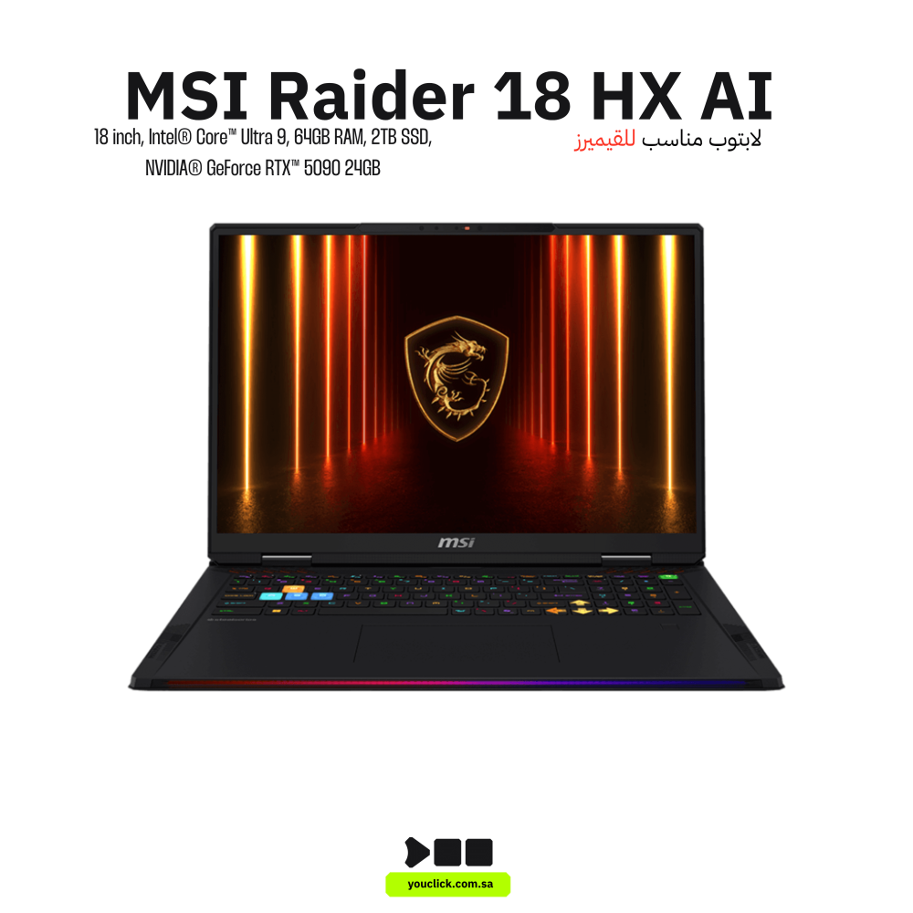 كمبيوتر محمول للألعاب إم إس آي رايدر 18HX، ألترا 9، 64 جيجا رام، 2 تيرا SSD، RTX 5090، شاشة 18 بوصة