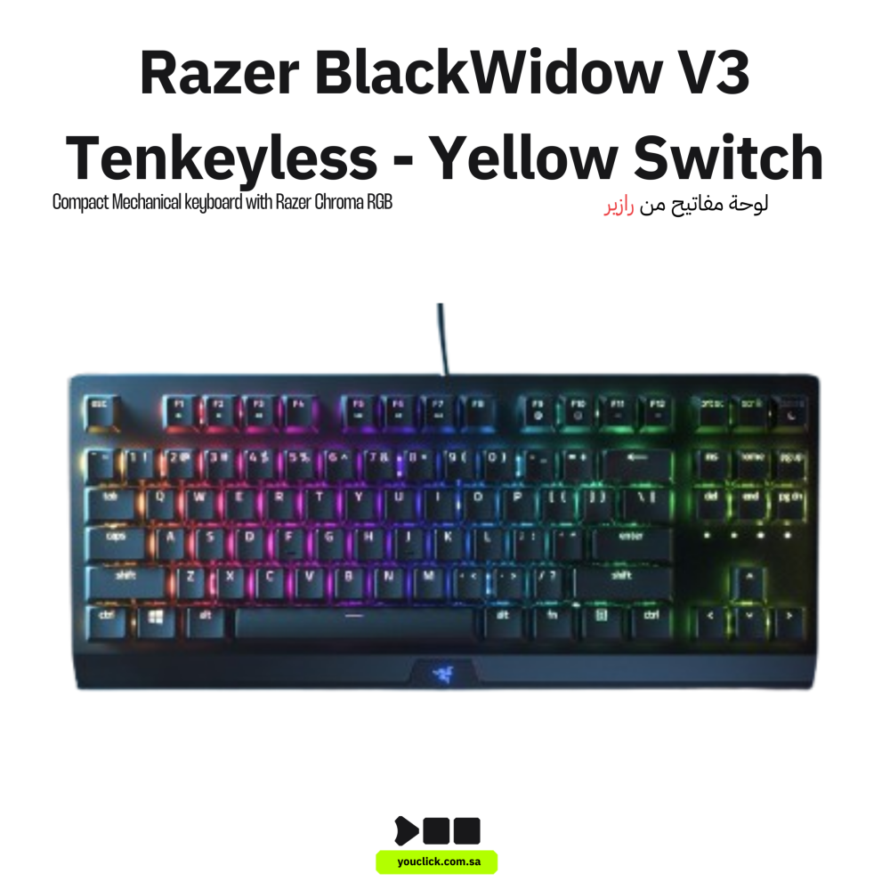 - الاسم التجاري: Razer BlackWidow V3 Tenkeyless - Yellow Switch.
