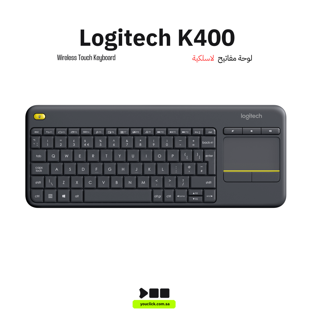 كيبورد لاسلكي تاتش من لوجيتك، تاتش كيبورد، موديل K400 بلس، أسود