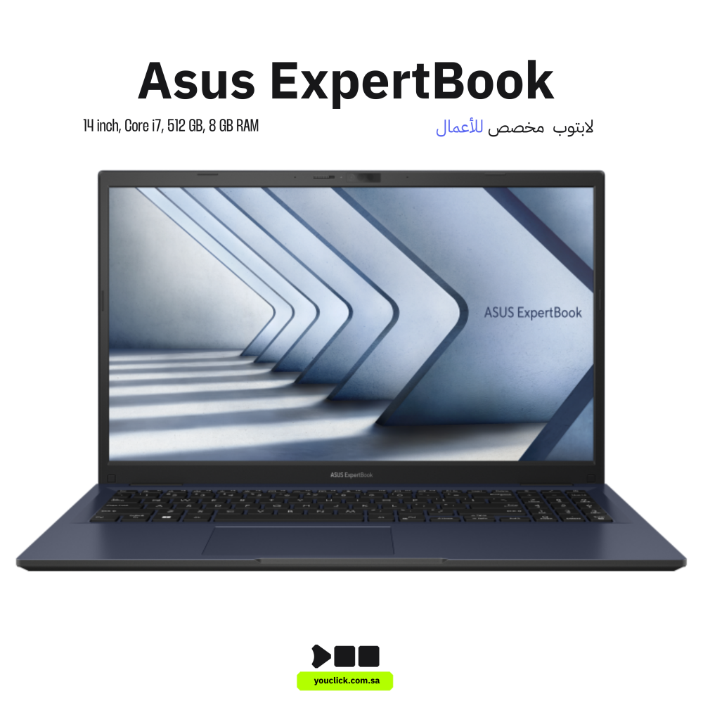 لابتوب أسوس ExpertBook B1402CBA, شاشة 14 إنش FHD, معالج Intel® Core™ i7 1255U, رام 8GB DDR4, ذاكره تخزين 512 جيجا, اسود