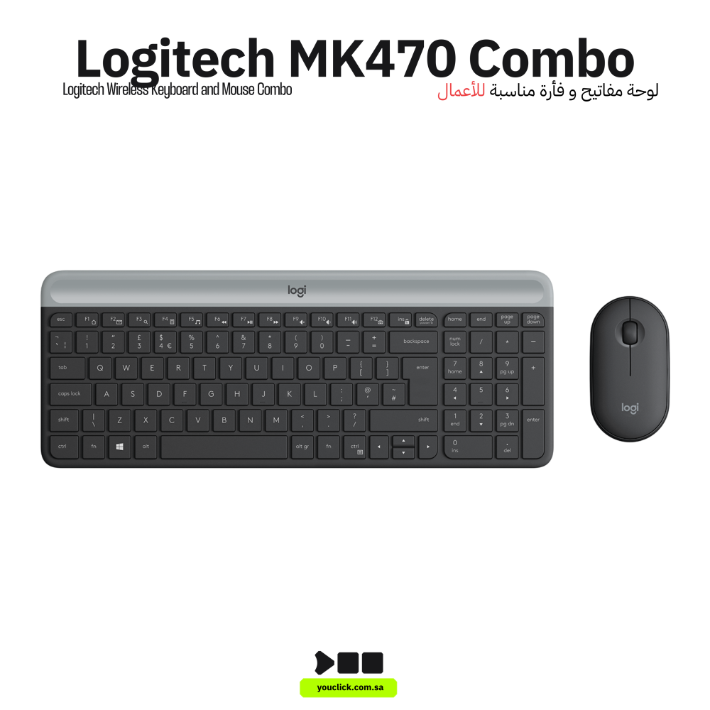 - الاسم التجاري: مجموعة لوحة المفاتيح والفأرة اللاسلكية النحيفة Logitech MK470.