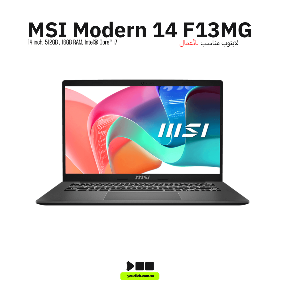 ام اس اي مودرن 14 لابتوب 14 بوصة, انتل كور آي (5-1355U) ,16 جيجابايت رام, 512 جيجابايت اس اس دي PCIe NVMe M.2, ويندوز 11, انتل ايريس اكس اي جرافيكس