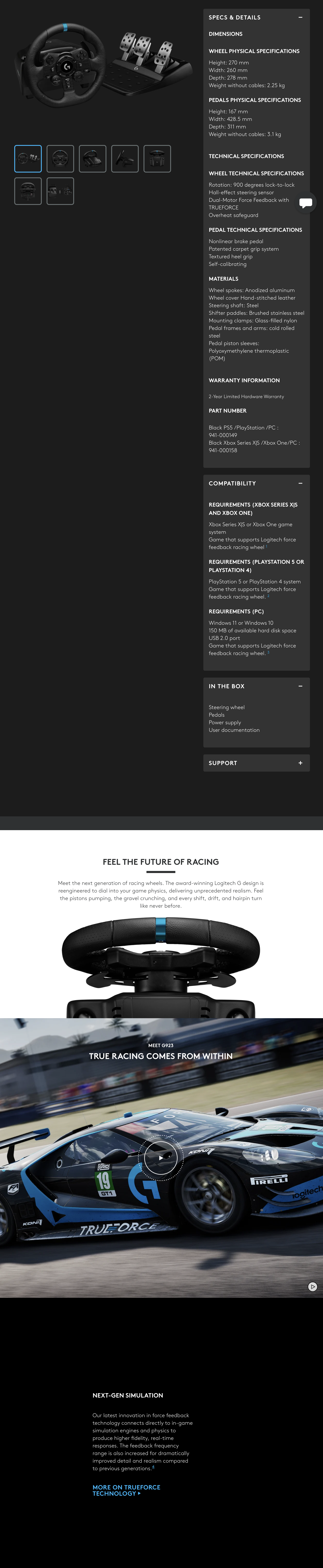 Game that supports Logitech force feedback racing wheel. 3For a list of supported games, visit logitechg.com/support/g923-xb1