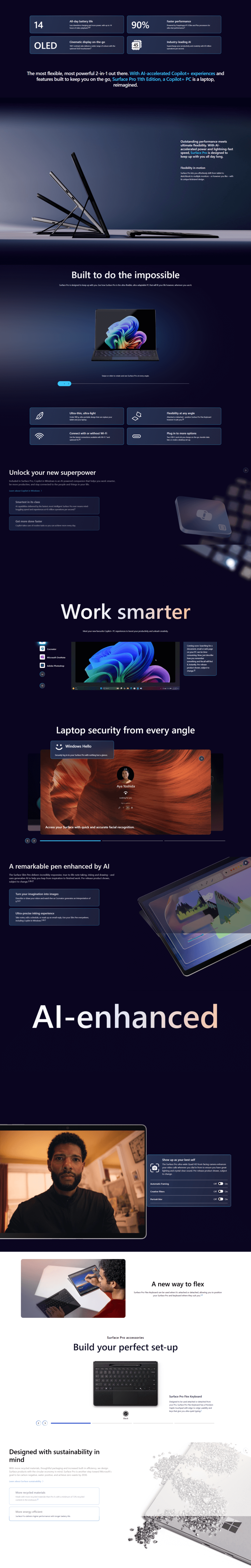 Microsoft 11th Edition Surface Pro Copilot+ PC Tablet, 13" PixelSense Flow Display, Intel Ultra 7 266V Processor, 32GB RAM, 1TB Storage, Intel Arc Graphics, Windows 11 Pro, Platinum | EP2-20070
