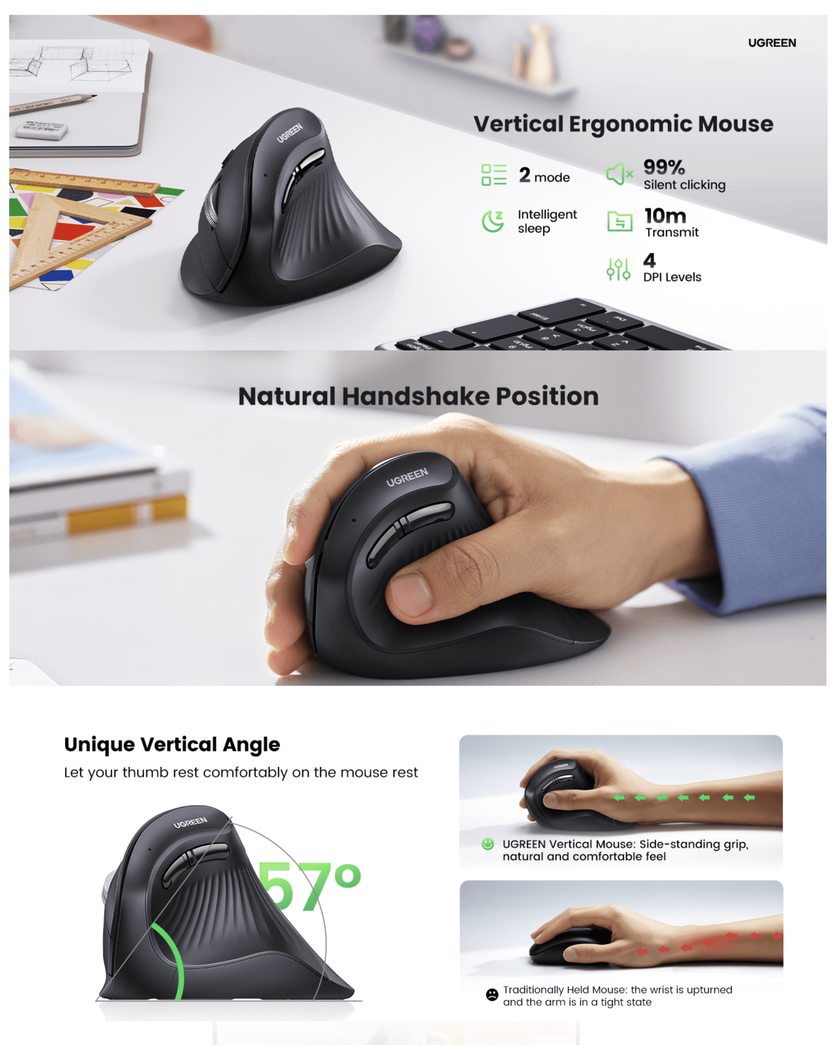 【Ultra Precise Movement】Swift tracking on diverse surfaces. Balanced weight distribution and bottom slide pads eliminate cursor shakes. Easily adjust resolutions between 1000DPI, 1600DPI, 2000DPI, and 4000DPI with a visible DPI indicator.