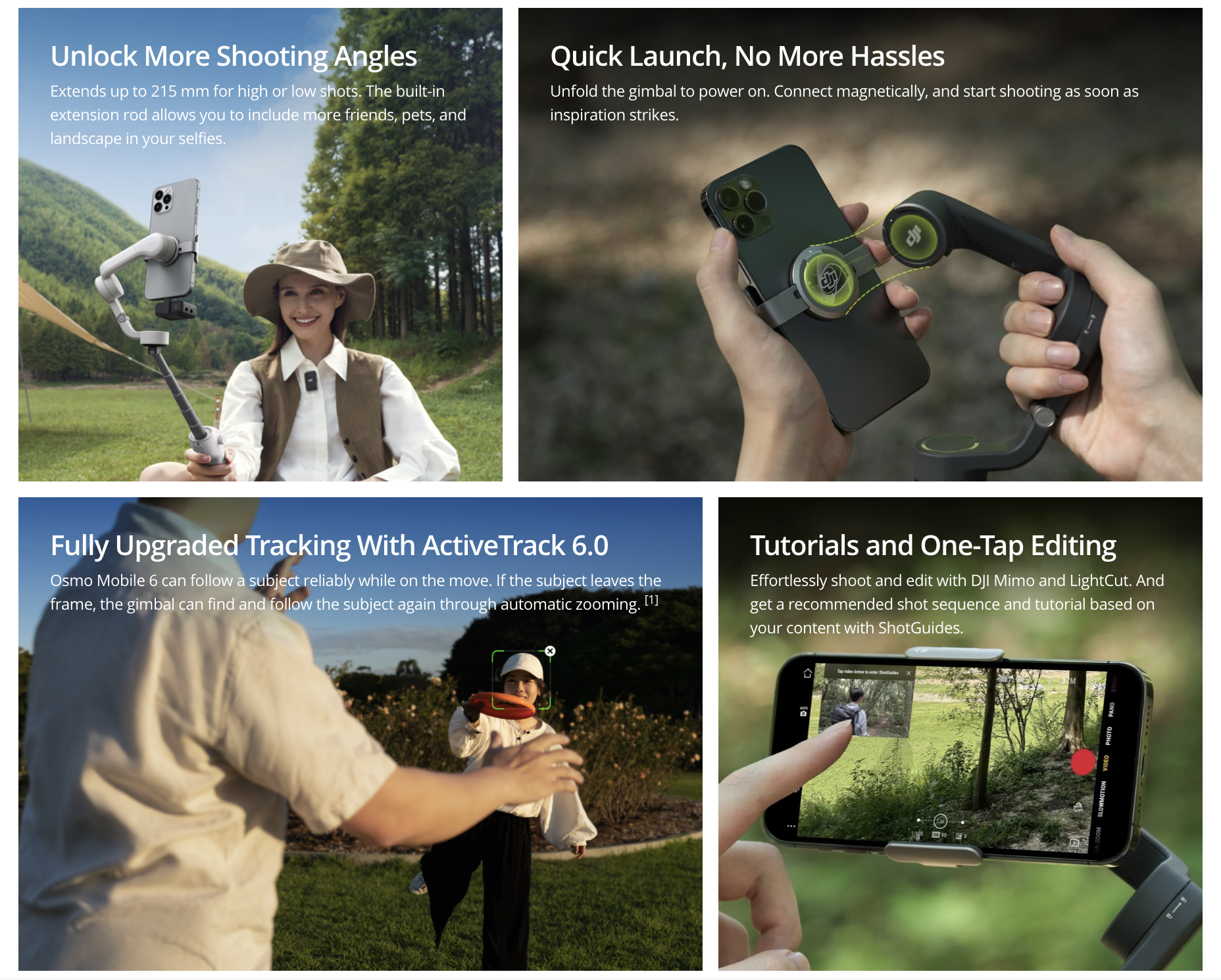 DJI OSMO Mobile 6 Smartphone Gimbal Stabilizer 3-Axis Phone Gimbal Built-In Extension Rod Portable and Foldable Android and iPhone Gimbal with ShotGuides Vlogging Stabilizer YouTube TikTok Video