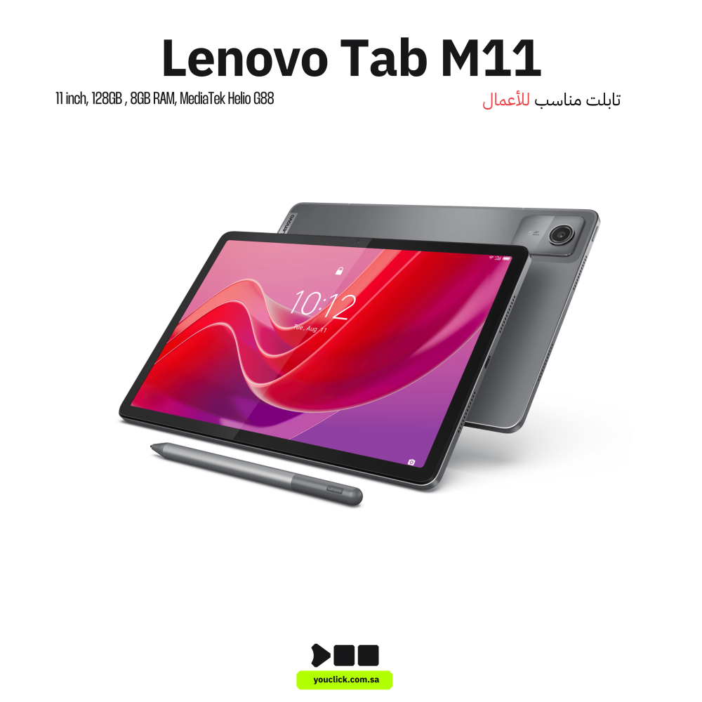Lenovo TAB M11, 8GB, 128GB, 4G LTE, Grey with Folio Case and Pen