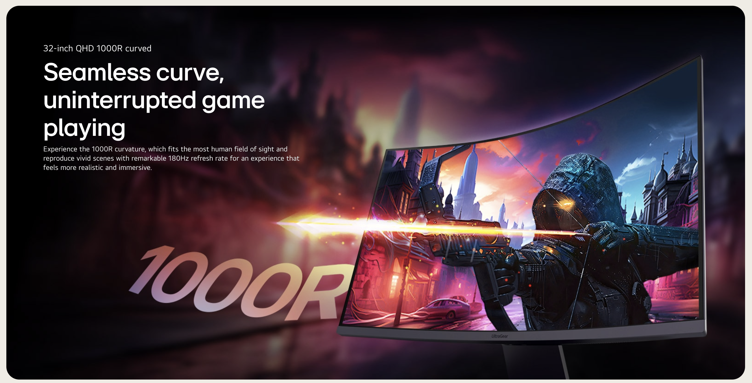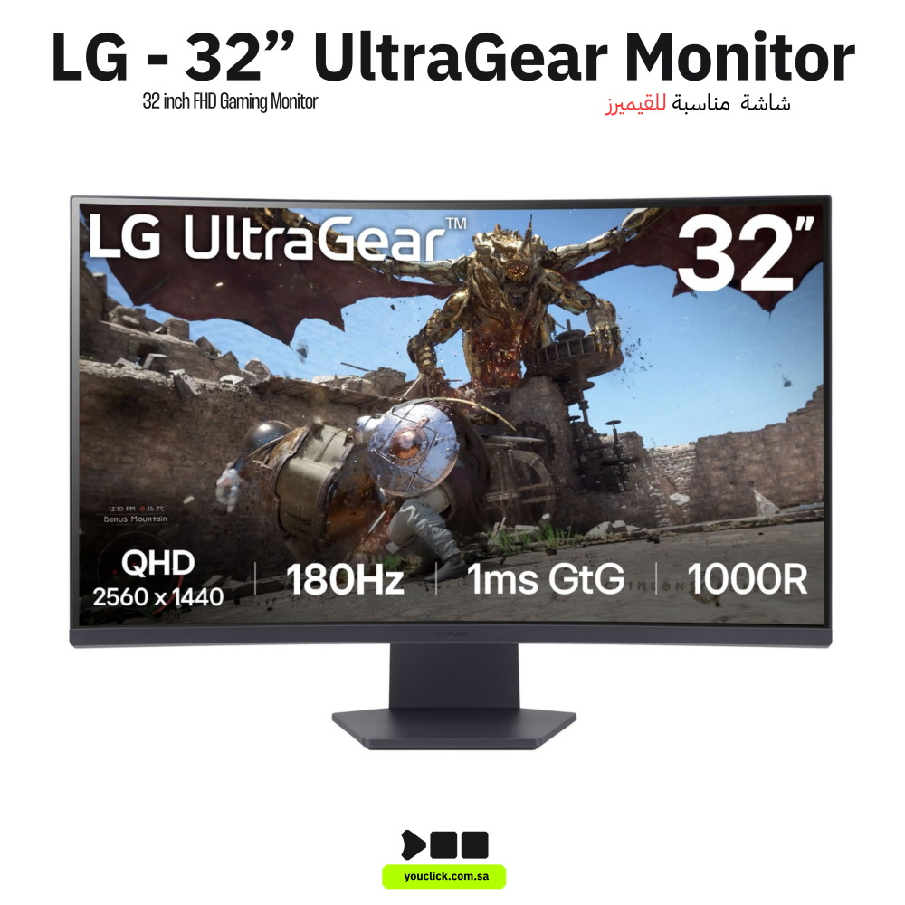 LG 32GS60QC-B Ultragear 32-inch Curved Gaming Monitor QHD (2560x1440) 180Hz 1ms 1000R AMD FreeSync HDR10 HDMIx2 DisplayPort Black